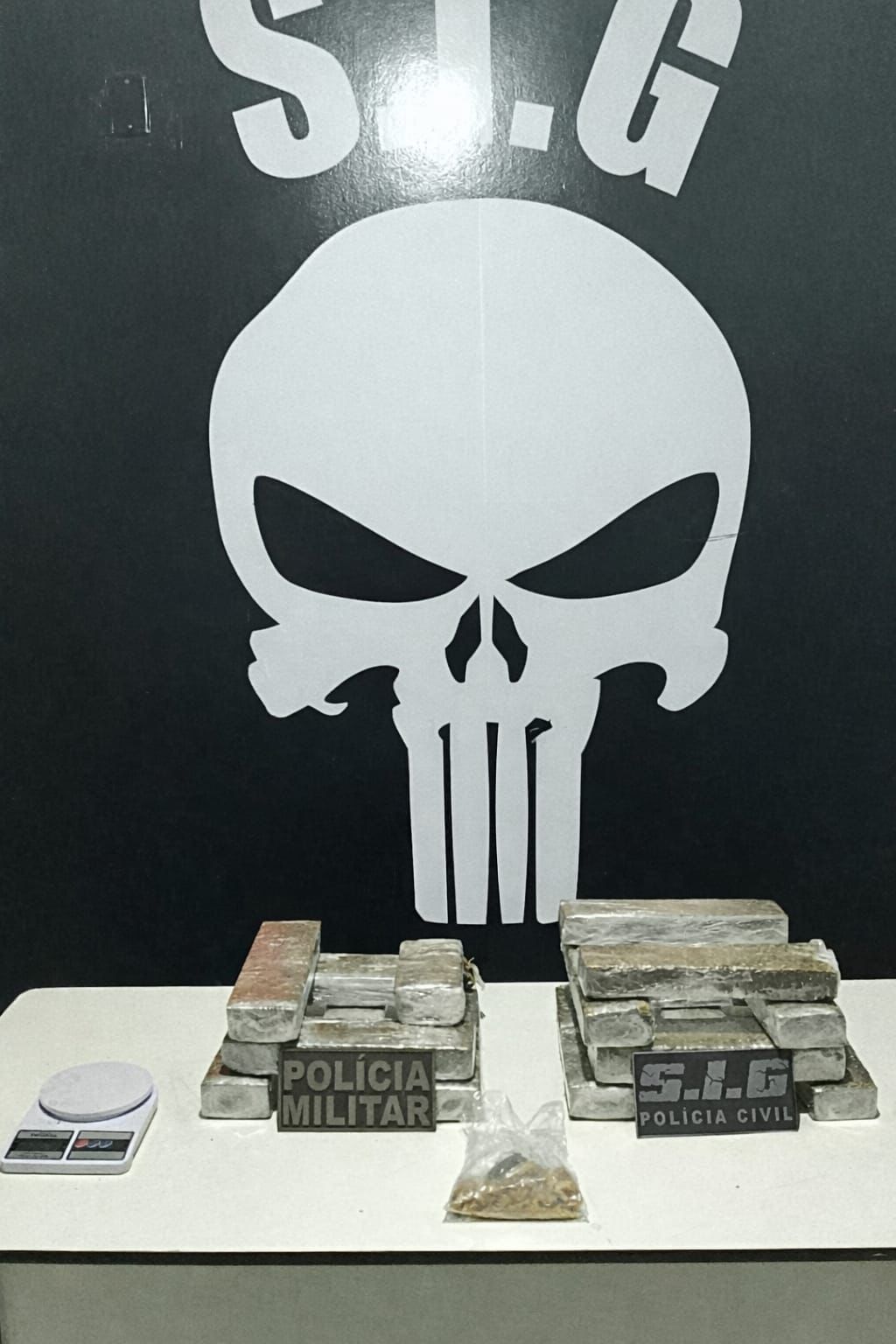 Durante averiguação na casa em reforma, anexa ao imóvel da investigada, os policiais localizaram uma sacola contendo aproximadamente 96 gramas de cocaína e 45 gramas de crack, já fracionadas e prontas para comercialização e uma balança de precisão.